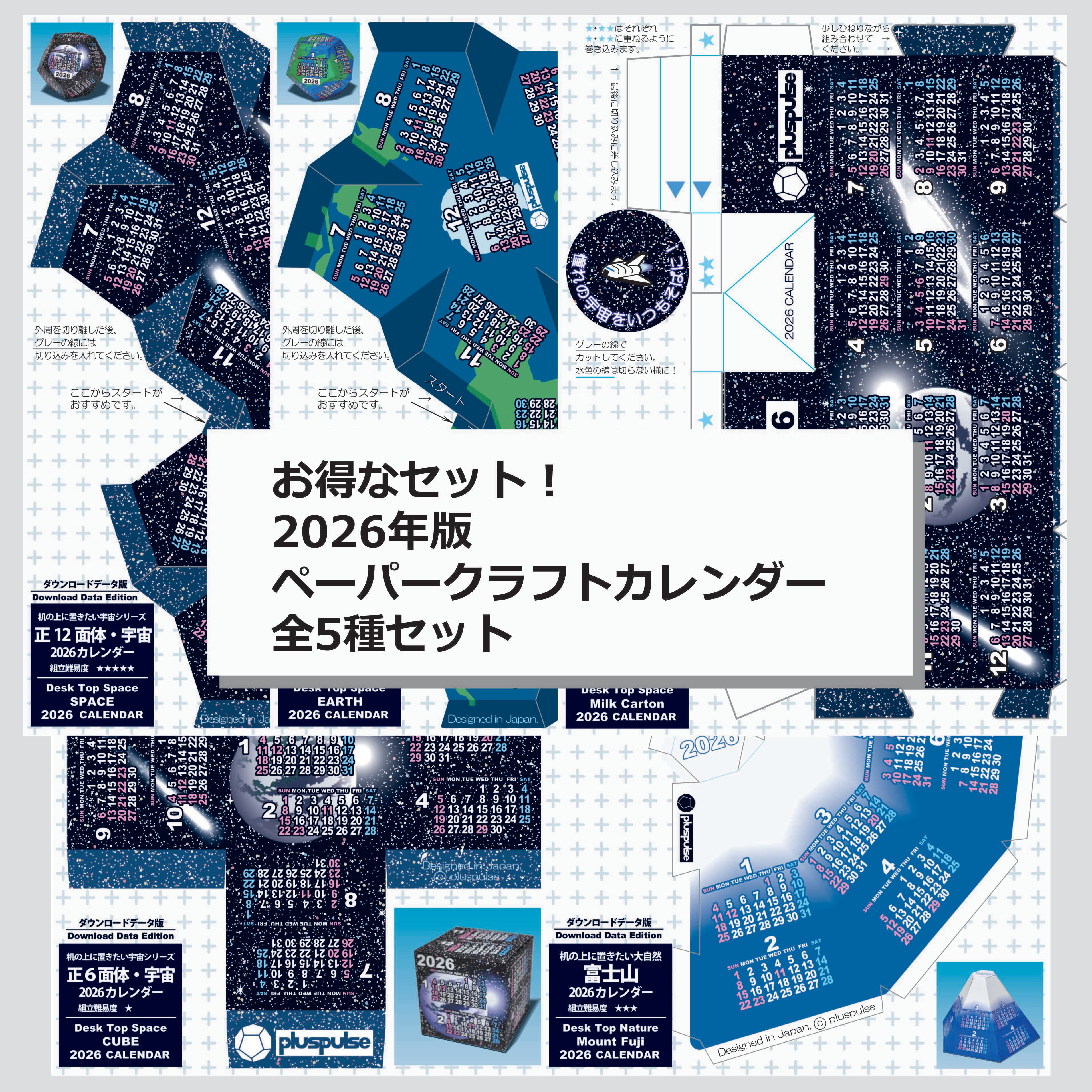 ペーパークラフトカレンダー全5種を1セットにしてお得にご提供。
